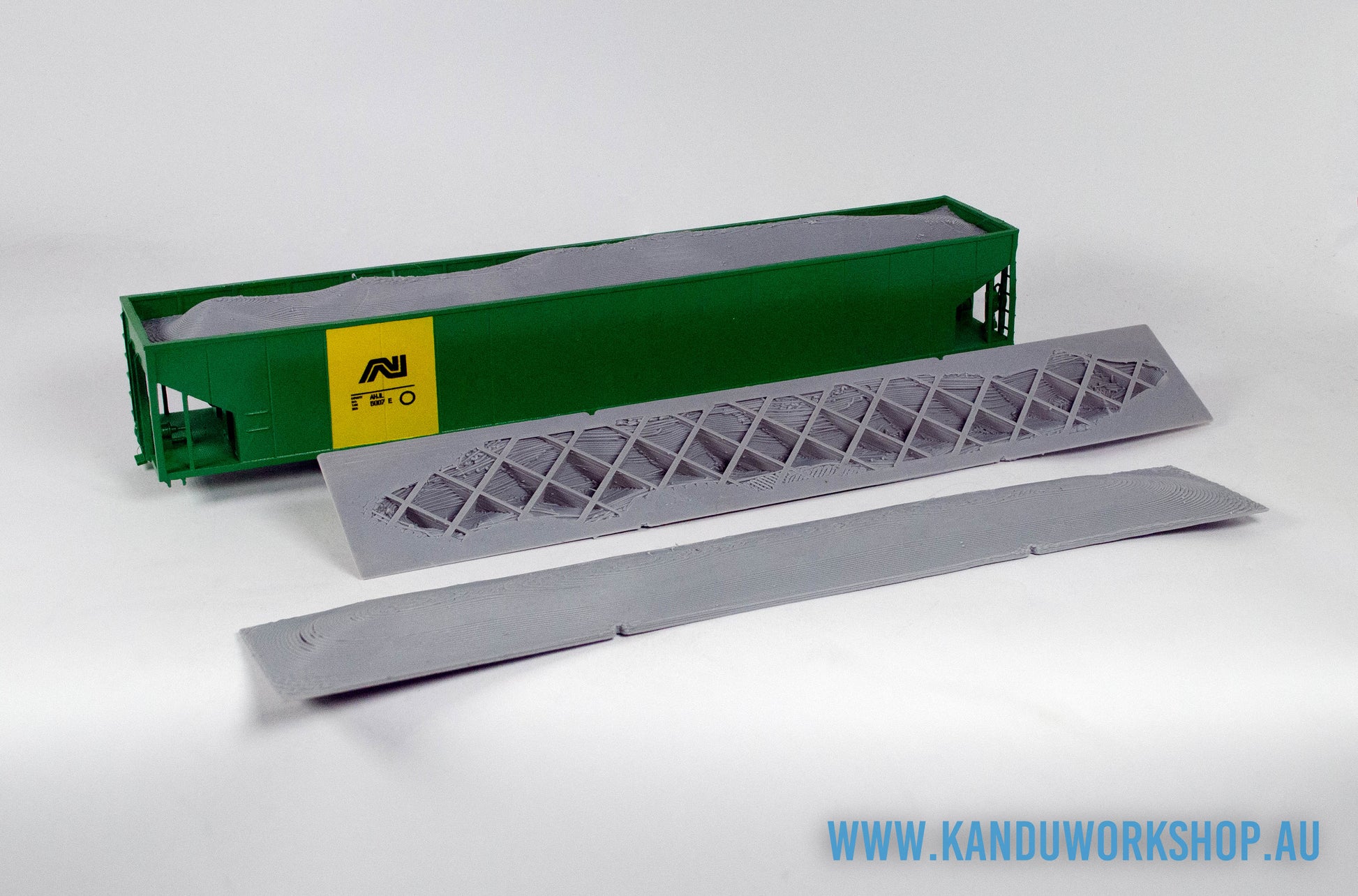 FDM 3D printed load inserts for the standard length AHJL hopper. a lightweight base to add texture and colour to for simulating a loaded hopper.