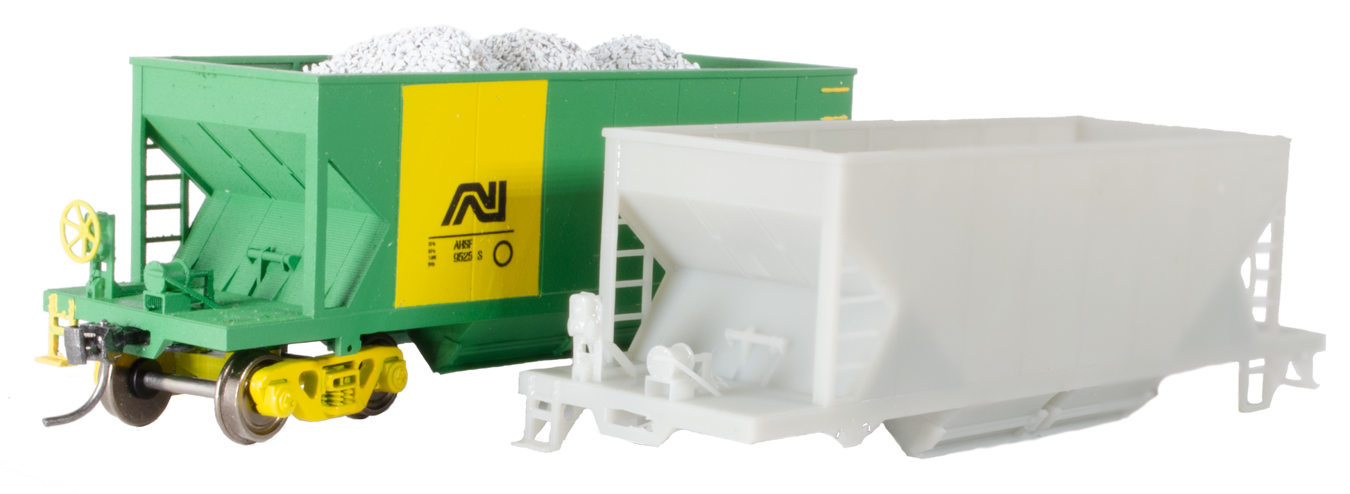 High resolution 3d printed model of the AN AHSF/AHSA Hopper wagon, mostly known for being used on the Penrice stone train 'The Stonie'.