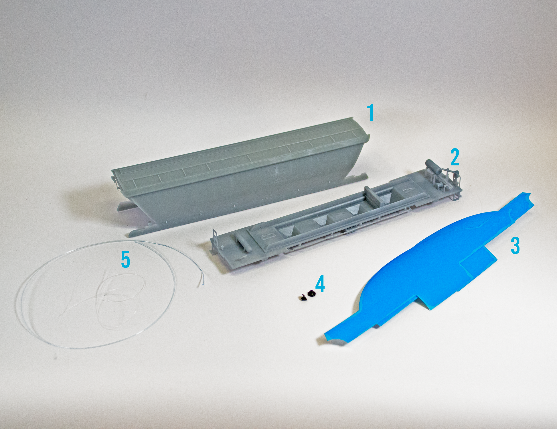 HO Scale 3D Printed body 3D Printed Chassis fishing line x20cm .17mm side brake link 2x m2x2 screws Paint Stencil x2 CGAY Decals x2/ wagon CF Decals x4/wagon View full details